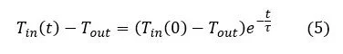 where Tout = 23°C (room temperature) and τ is the time constant. This equation corresponds to the exponential temperature decay [28]:
