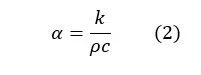 where α is thermal diffusivity, k is thermal conductivity, c is specific heat capacity (heat capacity of 1 kg of a material) and ρ is density of material (calculated by dividing the mass of an object by its volume). If the temperature distribution inside a material is non-uniform, then the heat will be transferred from hotter areas to the colder areas in order to produce an even distribution of heat. The time taken for the temperature to distribute is characterised by the thermal diffusivity of the material, which is a measure of the material’s thermal buffering properties.
